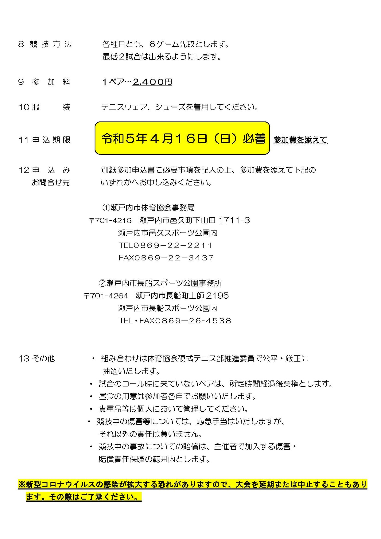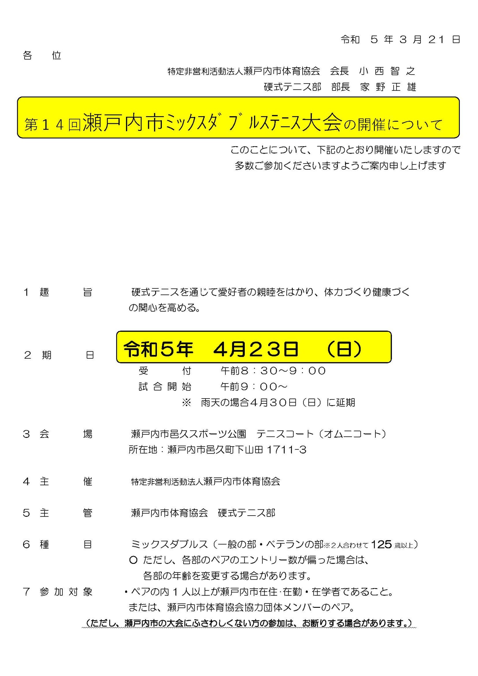 第14回 瀬戸内市ミックスダブルステニス大会の開催について