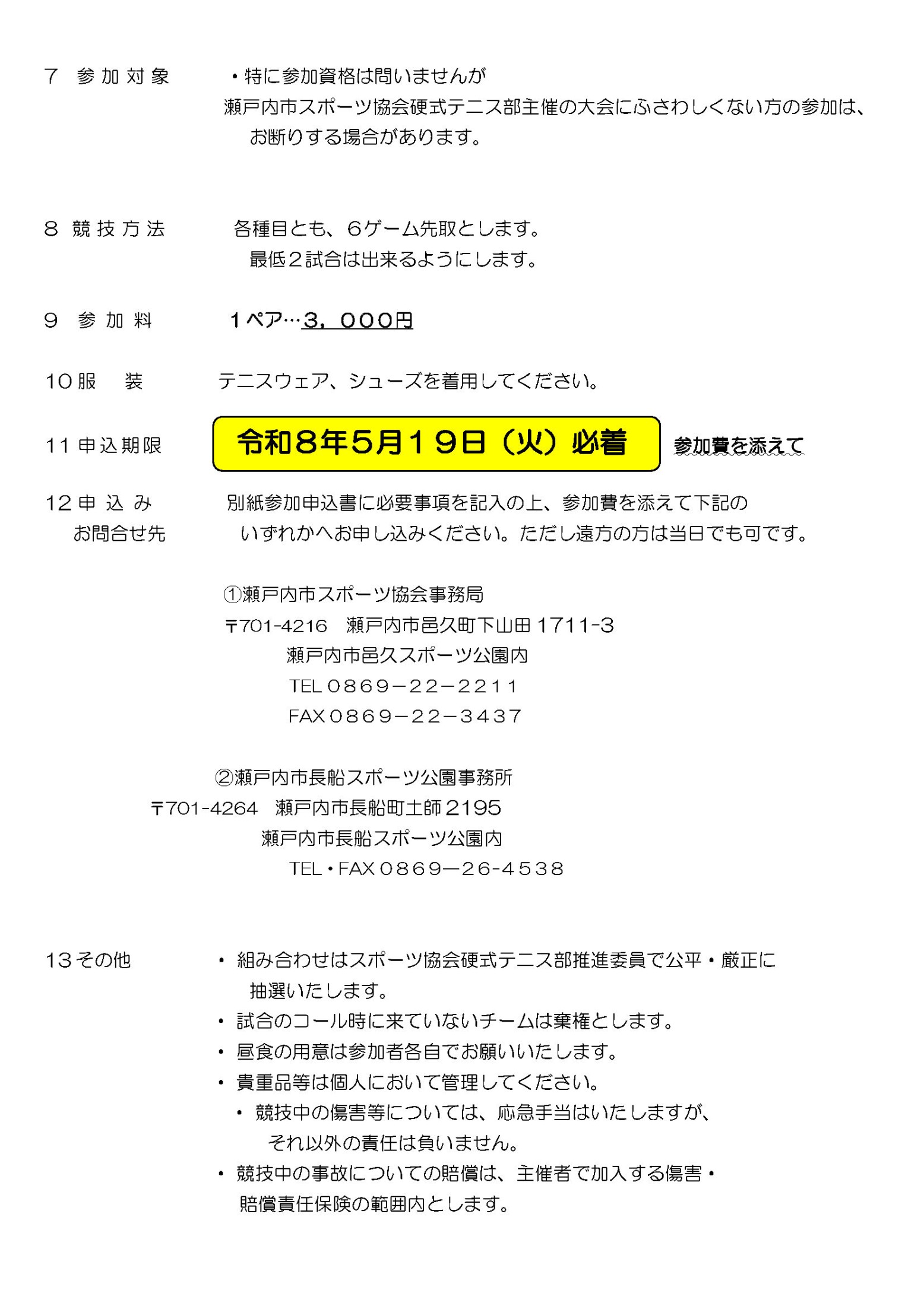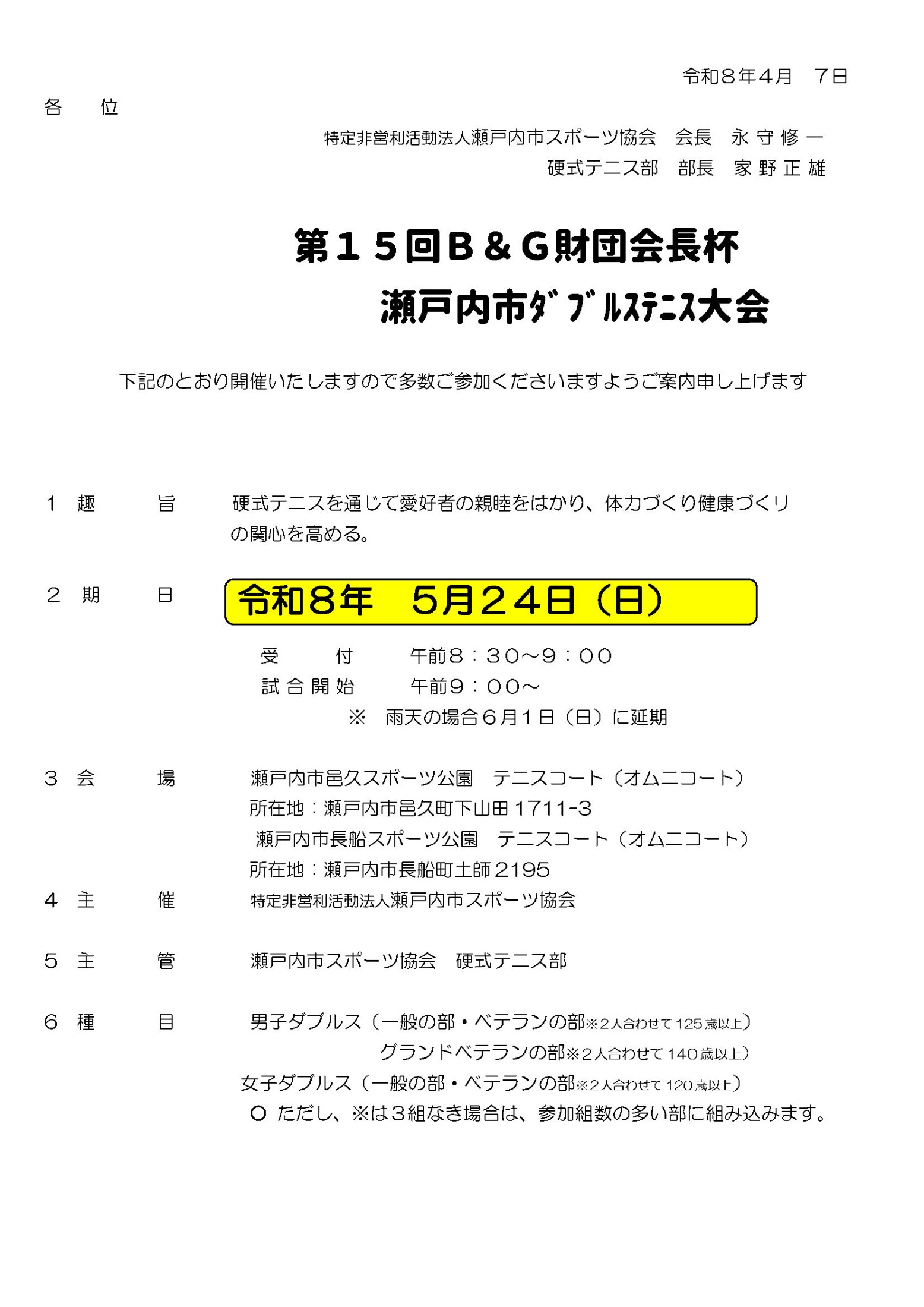 第15回B&G財団会長杯瀬戸内市ダブルステニス大会